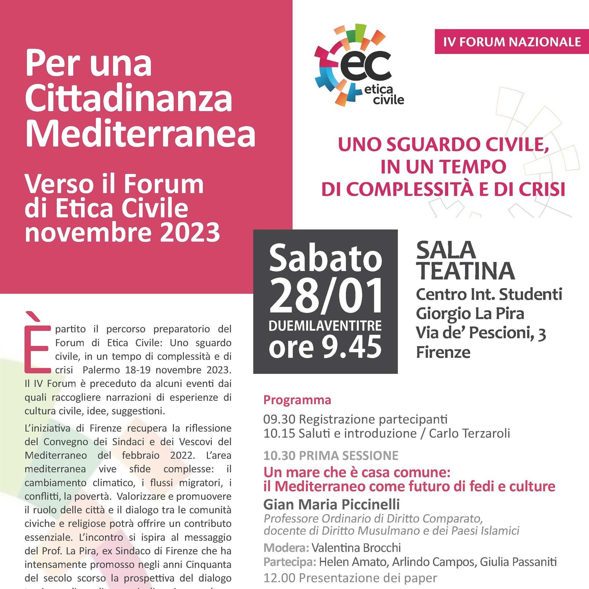 Per una Cittadinanza Mediterranea. Verso il Forum di Etica Civile novembre 2023