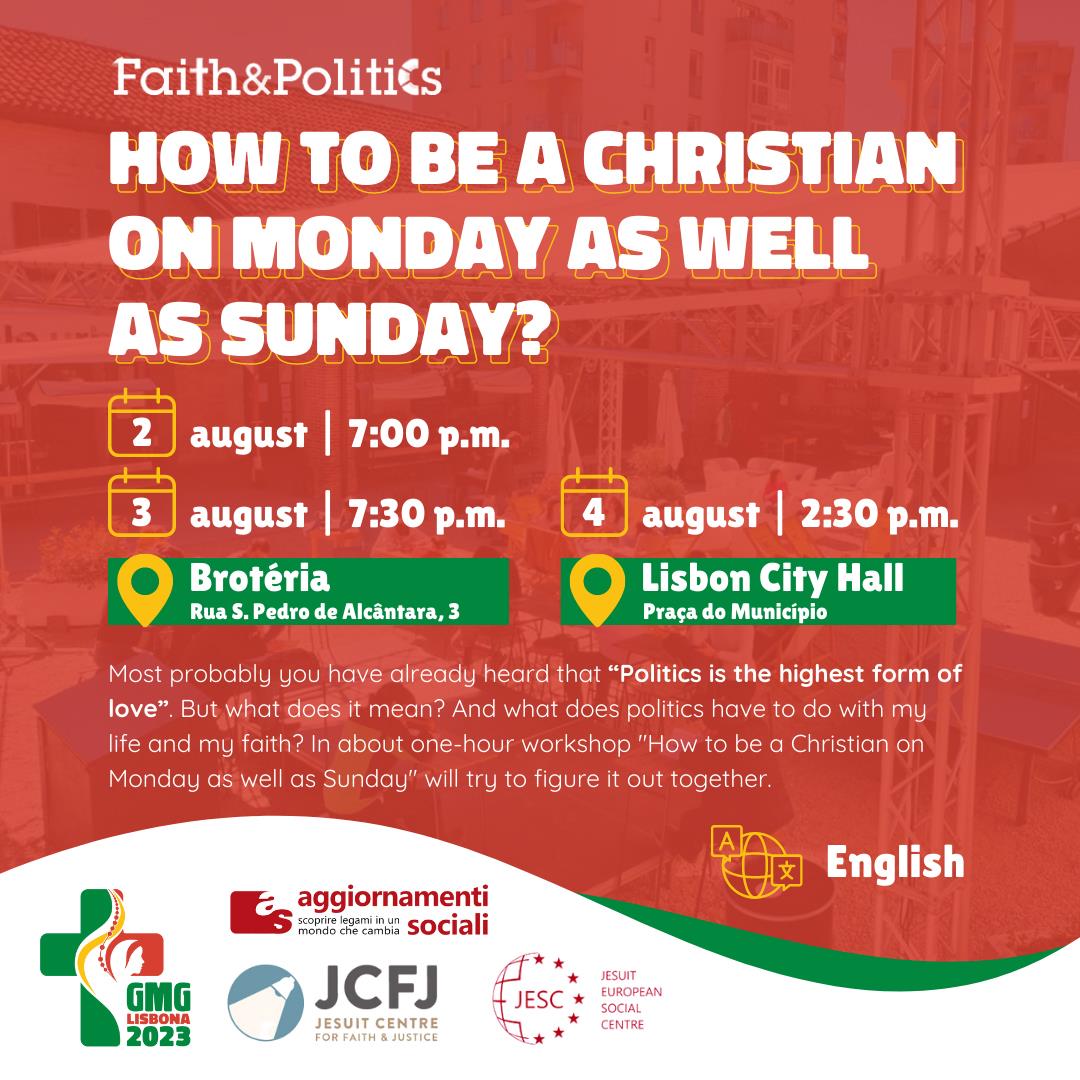 In un workshop di circa un'ora "Come essere cristiani il lunedì come la domenica" cercheremo di capirlo insieme durante la Giornata Mondiale della Gioventù 2023 a Lisbona.