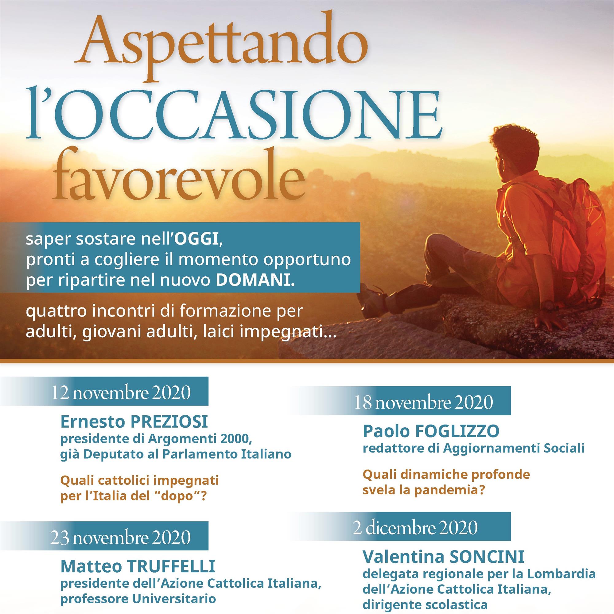 partecipa al ciclo di incontri di formazione per adulti, giovani adulti e laici impegnati "Aspettando l'occasione favorevole", organizzato dall'Azione Cattolica della Diocesi di Alba, con un intervento dal titolo