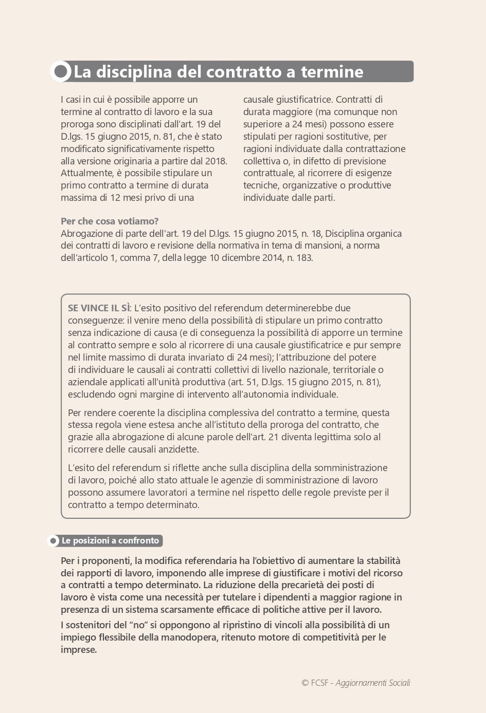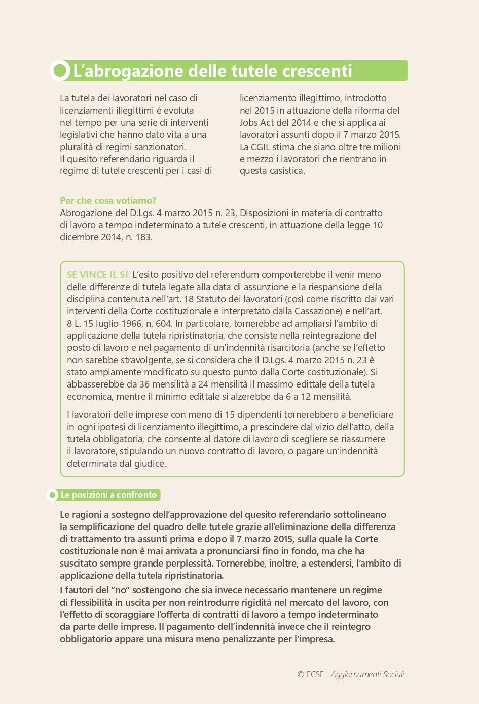 Schede informative sui referendum lavoro e cittadinanza